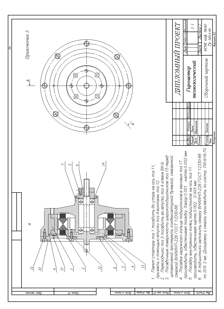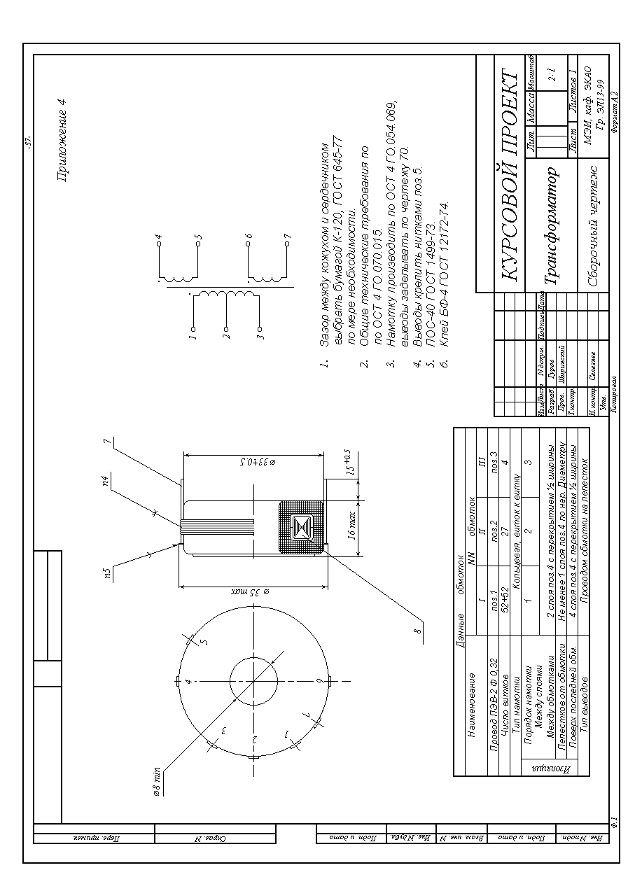 Примеры выполнения сборочных чертежей (трансформатора и гиродвигателя) приведены в приложениях 3 и 4.