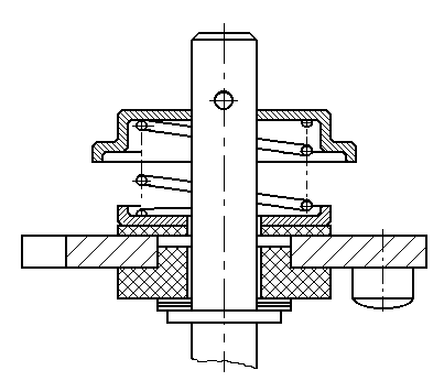 Изделия, расположенные за винтовой пружиной, изображают до зоны, условно закрывающей эти изделия и определяемой осевыми линями витков пружины.