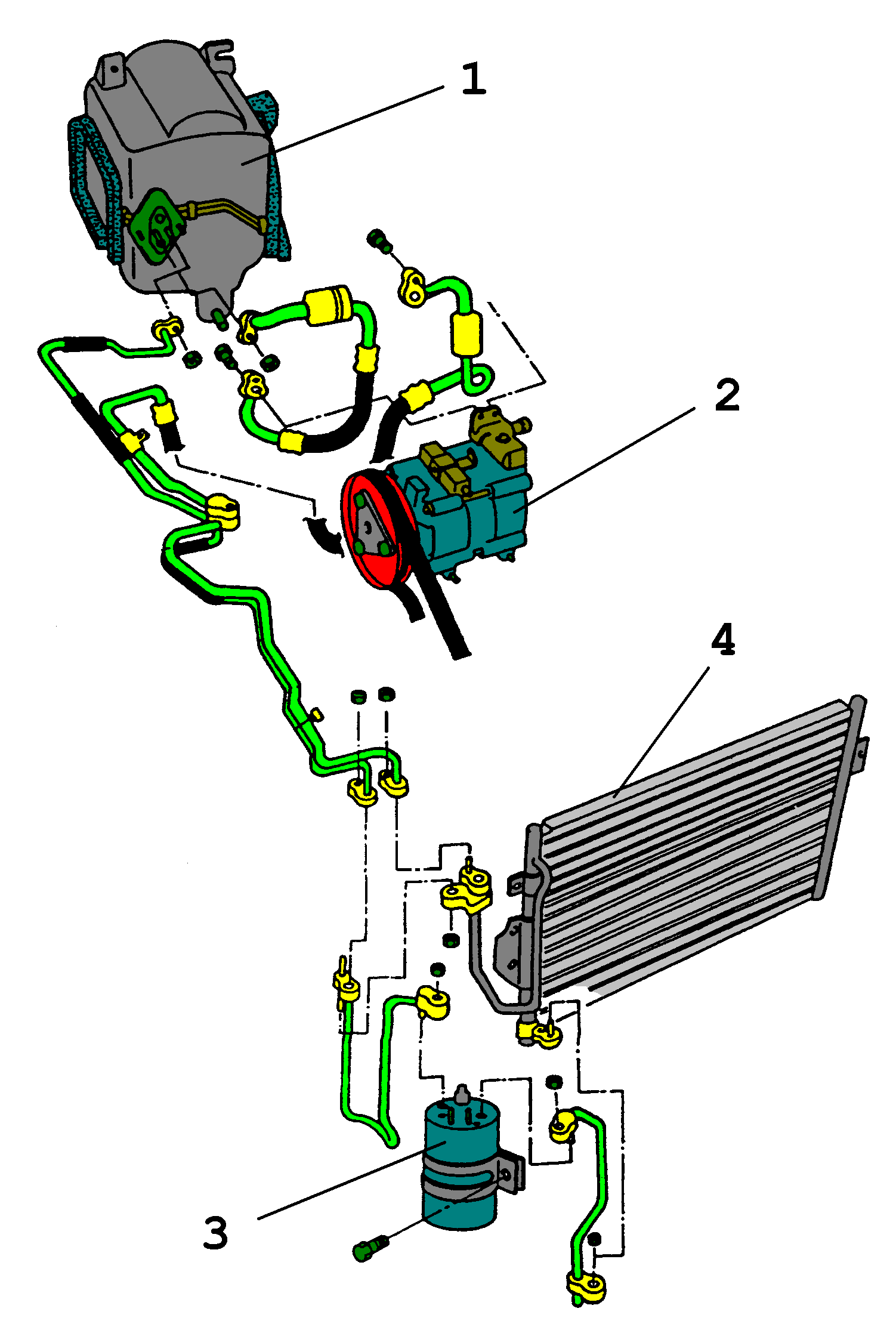 1 – ИСПАРИТЕЛЬ; 2 – КОМПРЕССОР; 3 – РЕСИВЕР; 4 - КОНДЕНСАТОР