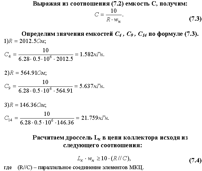 Расчитаем элементы схемы, воспользовавшись справочными данными и приведенными ниже формулами.