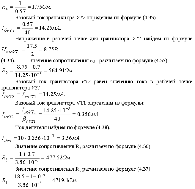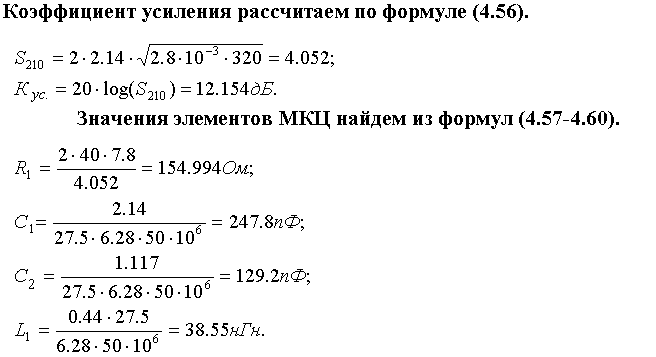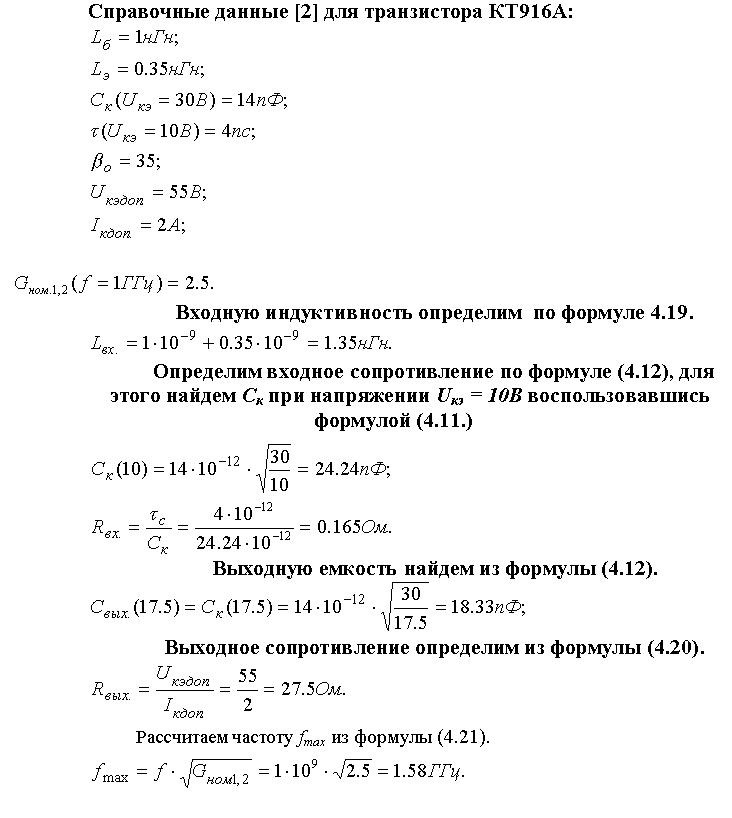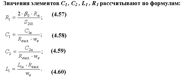 Рассчитаем элементы схемы воспользовавшись справочными данными и приведенными ниже формулами.