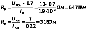 Обычно сопротивление в цепи коллектора и сопротивление нагрузки принимают одинаковыми. Рассчитаем энергетические параметры схемы: