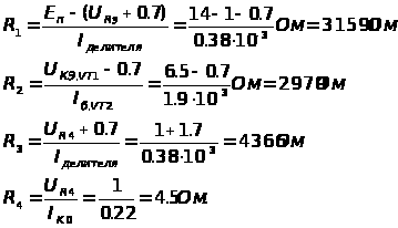 Рассчитаем номиналы схемы по формулам (3.24):