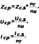 Полученные при расчетах значения первичных сопротивлений Z>с.з.> напряжения U>с.з.> и тока I>с.з.> срабатывания защит нужно привести ко вторичным сторонам измерительных трансформаторов, т.е. определить для соответствующих величин уставки реле электронных защит.