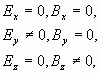 Рассмотрим простой случай свободного электромагнитного поля в вакууме с плоским фронтом волны. Это поперечный волновой процесс, в котором вектора электрического и магнитного поля ортогональны друг другу, а так же направлению своего распространения. Следовательно, можно выбрать направление осей покоящейся системы координат таким образом, что компоненты электрического и магнитного поля будут иметь только по одной составляющей. Для определенности положим: