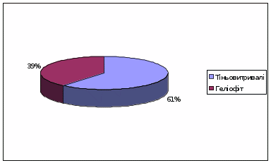 Розподіл досліджуваних видів за екологічними групами за відношенням до світла наведені на рис. 4.2.