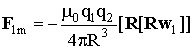 где R - расстояние между зарядами. На каждый из зарядов со стороны магнитного поля, создаваемого другим зарядом будет действовать сила Лоренца FL1, FL2, так что суммарная сила Лоренца в системе FL = FL1 + FL2. Отсюда после подстановок и алгебраических преобразование получим: