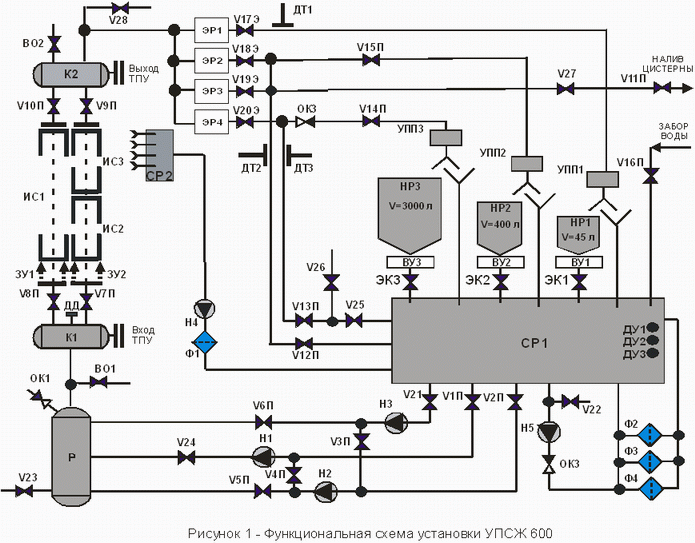 система хранения и подготовки воды ( резервуар СР1, ресивер Р, циркуляционный насос Н5, фильтры Ф2 – Ф4);