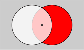 В действительности асимметрично расположенная масса имеет форму тела, выделенного красным цветом на рис. 10б. Но гораздо удобнее вычислять действие массы, имеющей форму шара (выделен на рис. 10а синим цветом), благо притяжение ими пробной массы тождественно равно. Направление действия силы во всех случаях определяется положением центра масс избыточного вещества, выделенного красным цветом.