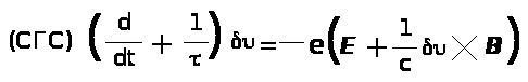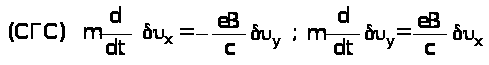 Рассмотрим уравнение движения для случая, когда поле B направлено вдоль оси z. Для простоты будем считать t®¥ и положим E = 0. Заметим попутно, что столь же просто можно было бы решить уравнения и для конечного t. Условие существования хорошо выраженной резонансной линии выполняется при w>c>t>1, где w>c> дается формулой (???) wcºeB/mc. Итак, в рассматриваемом случае уравнение,