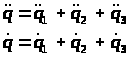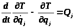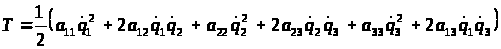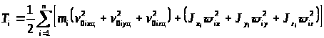 Используем выражение (1.2) для вывода уравнений динамики манипулятора. Рассматривая исполнительный механизм манипулятора как систему из n твердых тел, запишем его кинетическую энергию T в виде суммы кинетических энергий звеньев: