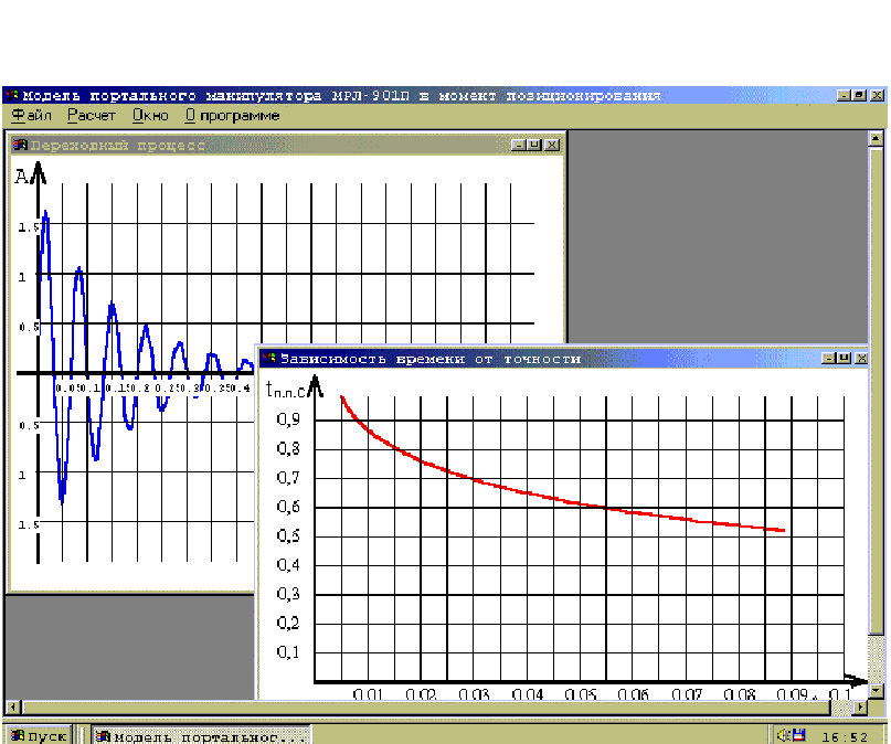 В ходе исследования полученной модели решена задача выбора оптимальной скорости перемещения рабочего органа, определена степень влияния точности позиционирования на быстродействие манипулятора.