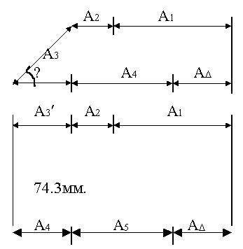 Обратная задача заключается в определении номинального размера, координат середины поля допуска и предельных отклонений замыкающего звена при заданных аналогичных значениях составляющих звеньев.