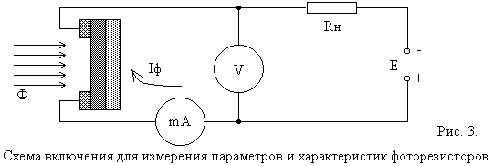Если фоторезистор включен последовательно с источником напряжения (рис. 3 приложения) и не освещен, то в его цепи будет протекать темновой ток