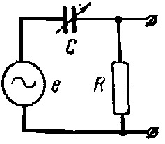 На рис. 6 приведен другой пример использования параметрического датчика. В этом случае с изменением значения емкости С меняется ток через нее, а следовательно, и напряжение на выходе системы, падающее на сопротивлении нагрузки R>н>, которое и является выходной величиной.
