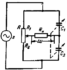 Рис. 7 Мостовая схема с емкостным дифференциальным датчиком