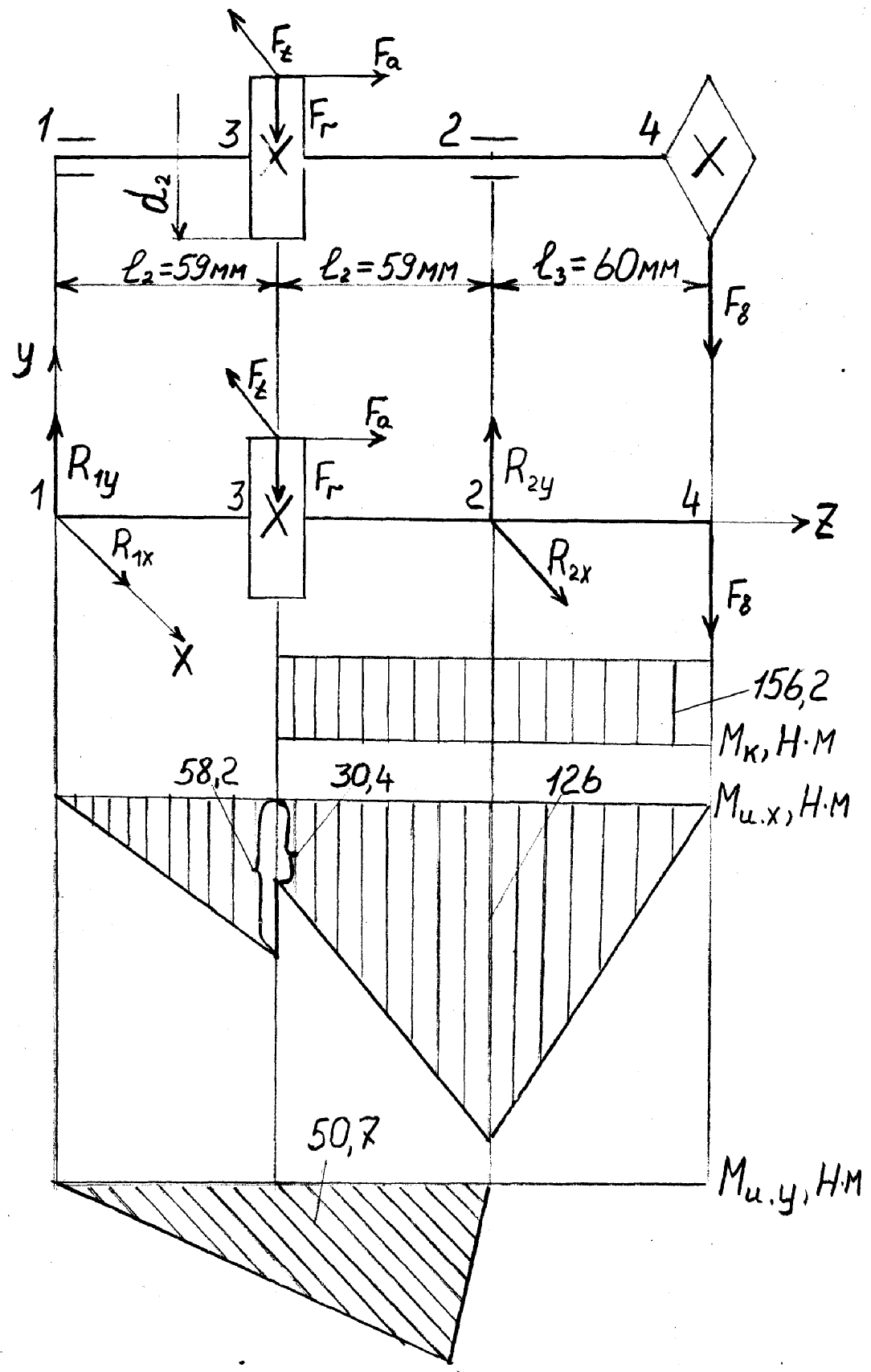 Производим расчет ведомого вала только в одном сечении – под зубчатым колесом.