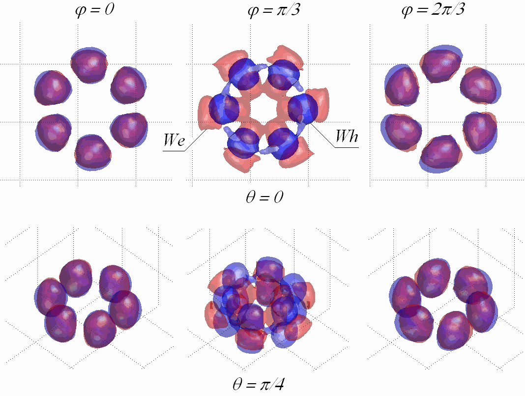 Известно, что Максвелл оставил нам не только теорию новой физической реальности – электромагнитного поля [1], которую он оформил в виде системы дифференциальных уравнений математической физики. Он также привёл пример их решения для идеальной плоской волны. Пример отличался наглядностью и убедительностью. Однако такие идеальные волны в природе отсутствуют (см., например, теорию частичной когерентности в [2]). Более того, их невозможно получить даже искусственно с помощью когерентного лазерного излучения (см., например, [3,4]). Поэтому любая попытка использовать частное решение задачи о плоских волнах для поиска других решений уравнений Максвелла или для их интерпретации требует крайней осторожности. Например, манипуляции с подвижной системой координат, предпринятые Х. Лоренцем, основаны на гипотезе о существовании некоей определённой и единой скорости распространения электромагнитных волн. Несомненно, эта гипотеза прямо следовала из частного примера Максвелла. Но в общем случае она никак не соответствует действительности, т.е. является в принципе несостоятельной. Дело в том, что в природе электромагнитные волны обладают кроме поступательной ещё и вращательной степенью свободы [5]. В этом можно убедиться, если рассматривать эволюцию волнового фронта в естественной световой волне, используя, например, современную технику голографии. Но сам процесс поворота виден лучше всего на примере распространения электромагнитных волн в замкнутом тороидальном диэлектрическом волноводе, который проиллюстрирован на Рис. 1. Здесь представлены результаты численного эксперимента в виде изображения полупрозрачных изоповерхностей плотности энергии электрической и магнитной компонент (We и Wh) в различных стадиях поворота волн (по углу j) под двумя ракурсами (q). Техника получения таких изображений описана в [5]. Постадийное расположение полей на Рис. 1 свидетельствует о том, что волны претерпевают сложную трансформацию при повороте, и групповые скорости компонент не равны между собой.
