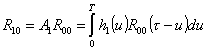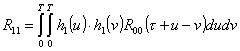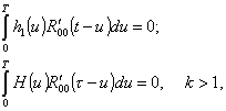 Множитель Лагранжа l>2> находится при интегрировании по интервалу T обеих частей уравнения (9), умноженных на ядро h>1>(u), а множитель l>1> - путем подобного интегрирования после возведения обеих частей уравнения в квадрат. Выполняя преобразования с учетом ограничений (6) и (7) и формулы (5), получим для ядра оператора A>1>, определяющего первый сигнал системы S>1>, и для корреляционной функции этого сигнала следующие выражения