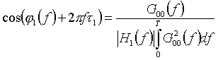 Найдем спектральную функцию первого оператора H>1>(f). Обозначим через G>00>(f) спектр мощности основного сигнала S>0>. Тогда ВКФ сигналов S>1> и S>2> можно представить [3] в виде