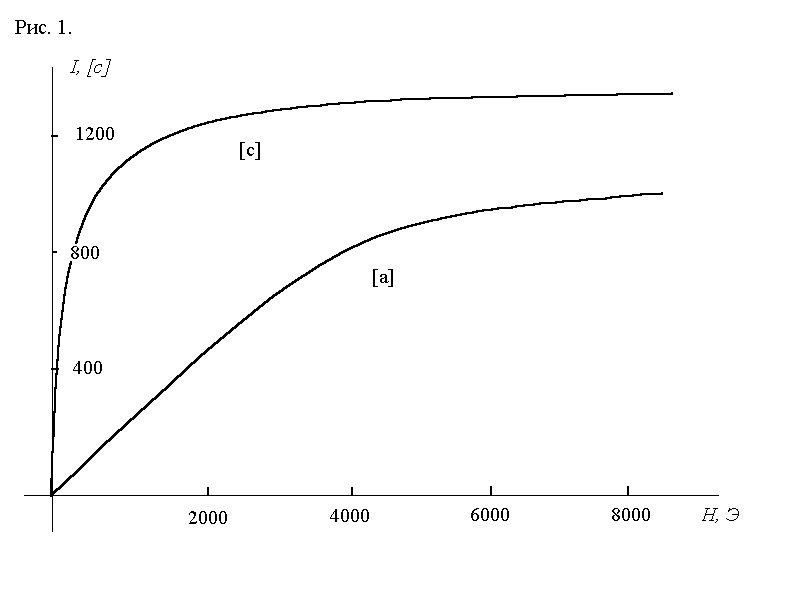 Рис.1. Кривые намагничивания I(Н) монокристалла кобальта, снятые