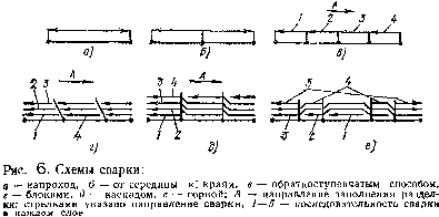 Под порядком заполнения швов понимается как порядок заполнения разделки шва по поперечному сечению, так и последовательность сварки по длине шва.