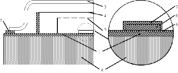 1 - проводящий слой; 2 - герметик; 3 - лицевое стекло; 4 - катод; 5 - сетка; 6 - стеклянная плата; 7 - слой люминофора; 8 - проводящий слой; 9 - слой диэлектрика.