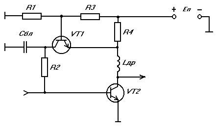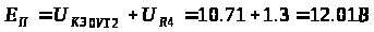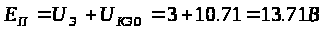 Напряжение источника питания для схемы будет составлять сумму падений напряжений на сопротивлении Rк и транзисторе: