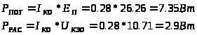 Рабочая точка расчитывается по заданной мощности Рвых или выходному напряжению Uвых. Но чаще даётся мощность, по которой можно найти выходное напряжение (амплитуду) из соотношения [1,2]: