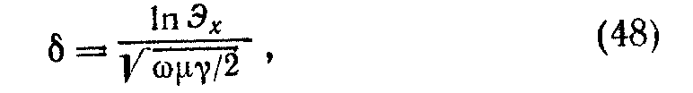 m — магнитная проницаемость металла защитного экрана, Г/м; g — электрическая проводимость металла экрана (Ом • м)'1; Э>х>—эффективность экранирования на рабочем месте, определяемая из выражения