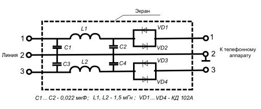Устройство защиты телефонных “Барьер-М1”. Инструкция по эксплуатации. М.: ТОО “Энсанос”, 1998, с. 4.