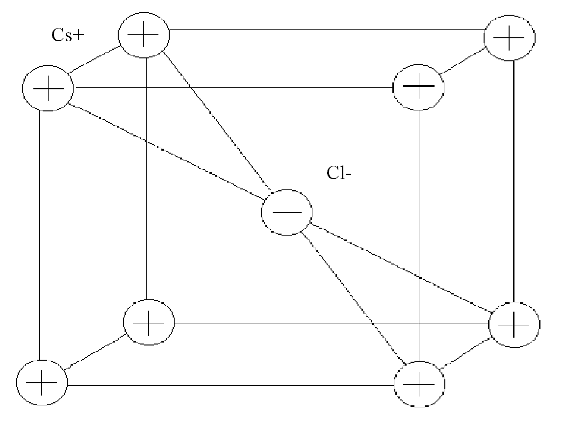 Рис. 4. Элементарная ячейка кристалла хлористого цезия CsCl.