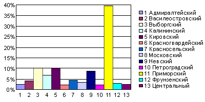 рынке по районам города (на 01.10.2001)