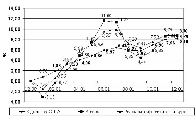 Продемонстрированная в 2001 г. предсказуемость движения валютного курса рубля в сочетании с устойчивой тенденцией к реальному укреплению национальной денежной единицы способствовали процессу восстановления доверия экономических субъектов к проводимой политике в сфере валютных отношений.
