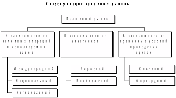 Фактически, валютный рынок является внебиржевым (неорганизованным), подобным рынку краткосрочных финансовых обязательств. Говоря более конкретно, валютный рынок состоит из ряда формально не определенных рынков, соединенных между собой посредством системы международных банковских связей. Участники этого рынка могут поддерживать между собой контакты с помощью различных средств связи. Покупка-продажа валюты может происходить ежедневно в любое время дня и ночи. На валютных рынках не существует письменных правил, регулирующих их деятельность, однако все проводимые на них сделки должны осуществляться в соответствии со сложившимися негласными процедурными и этическими нормами. Активность, с которой денежная единица продается и покупается на мировом рынке валют, зависит в определенной мере от принятого в этой стране внутреннего законодательства. На практике каждая страна в большей или меньшей степени является участником валютного рынка.