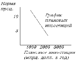 Экономическая система представляет много возможных вариантов для осуществления инвестиций, которые различаются по степени выгодности. При прочих равных условиях уменьшение процентных ставок ведёт к повышению уровня плановых инвестиций. Существует график плановых инвестиций, который иллюстрирует эту тенденцию: