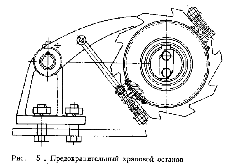 Запобіжні пристрої. Для утримання тягового органа з ковшами від падіння при обриві і від зворотного ходу при випадковому вимиканні двигуна застосовують обмежники зворотного ходу.