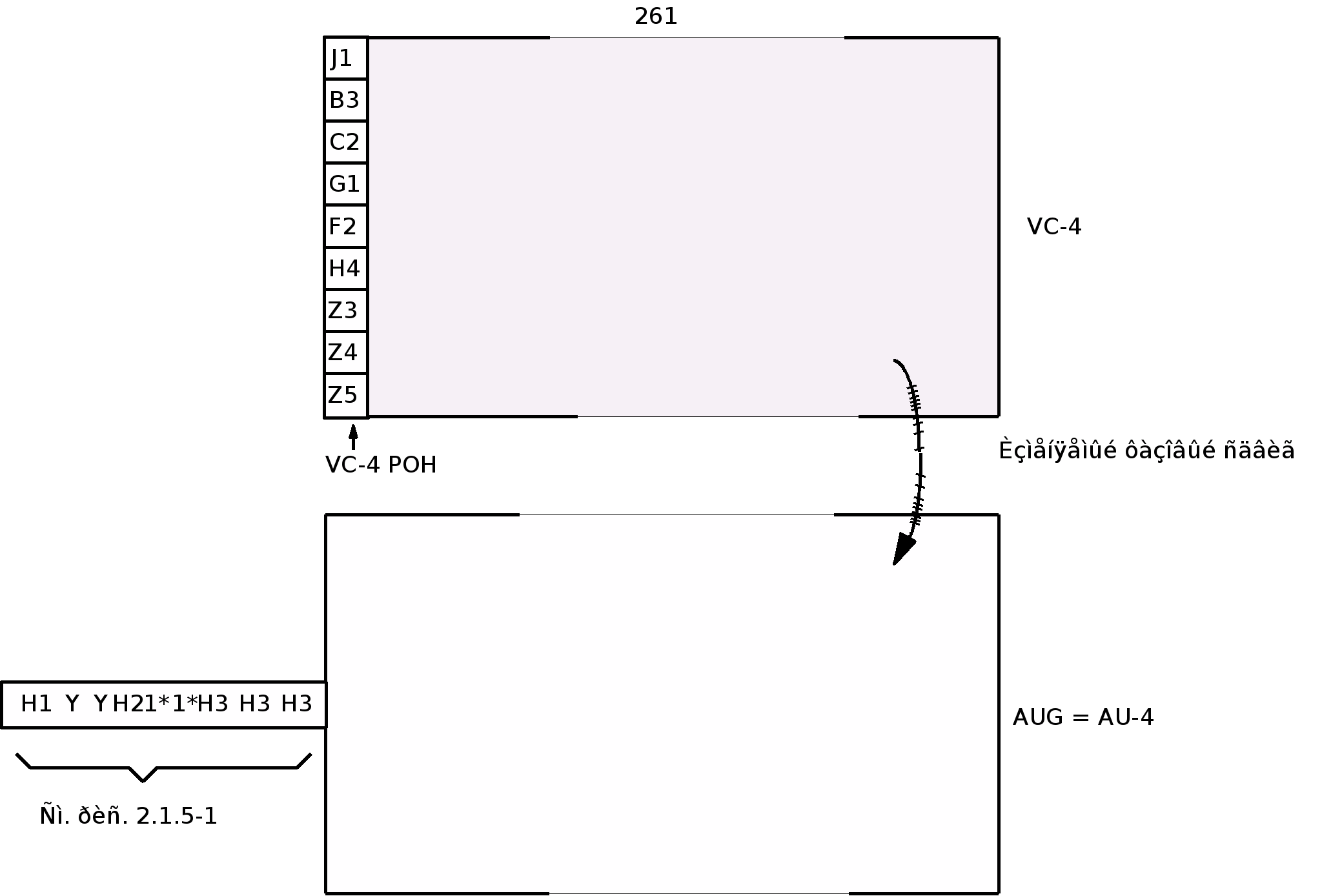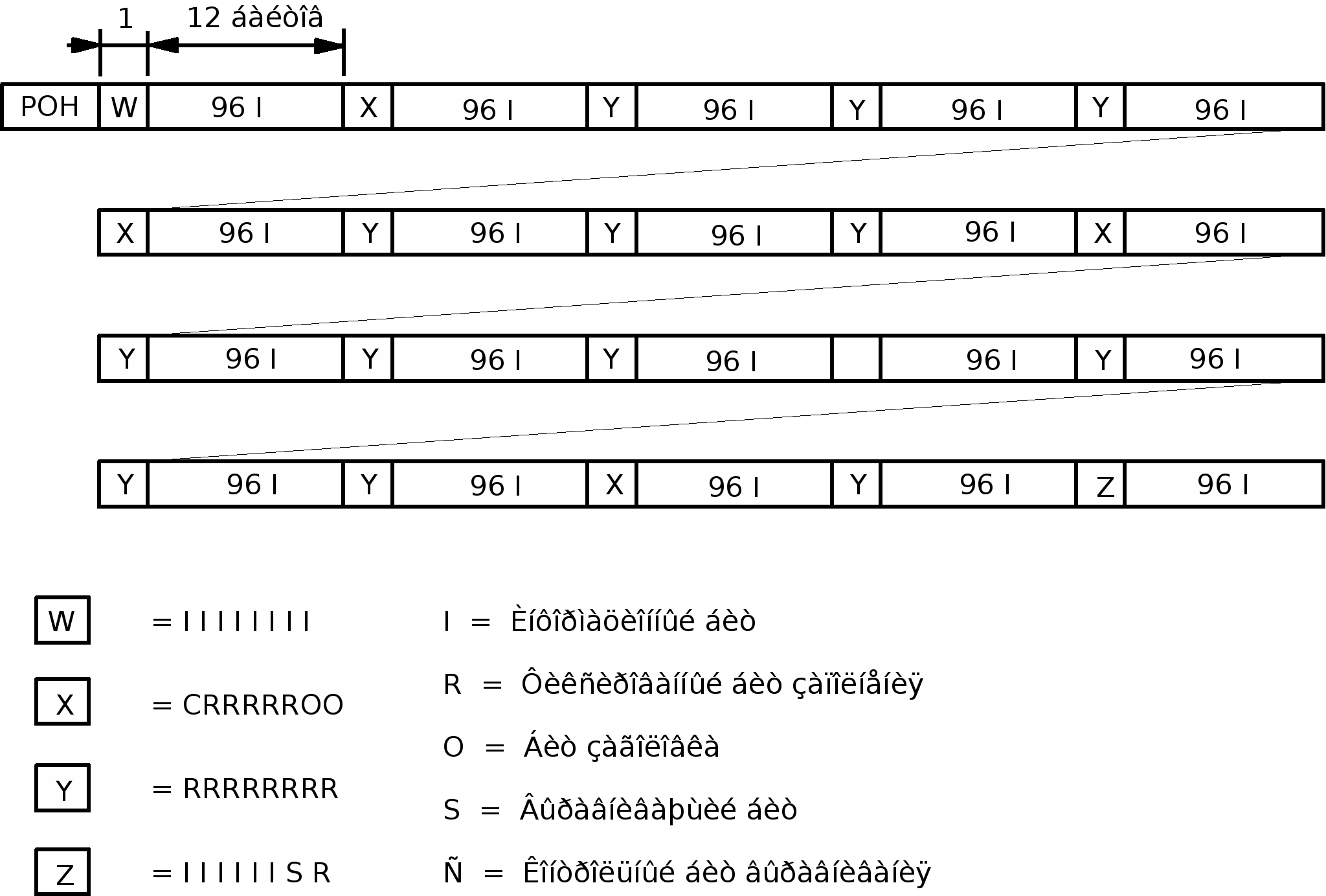 Цикл состоит из заголовка (содержащего сигнал привязки цикла и служебную информацию), адреса размещения полезной нагрузки и самой полезной нагрузки. Если синхронная сеть не является чисто распределительной сетью, наличие задержки в тракте означает, что только частота (но не фаза) входного сигнала сети синхронизирована. Следовательно, при мультиплексировании сигналов необходимо осуществить подстройку фазы/задержки. В плезиохронных системах это достигается с помощью процесса выравнивания. Однако в отличие от плезиохронных систем, использующих только положительное выравнивание, в системе СЦИ используется и положительное, и отрицательное выравнивание. Подробная информация об этом приведена в разделе 2.