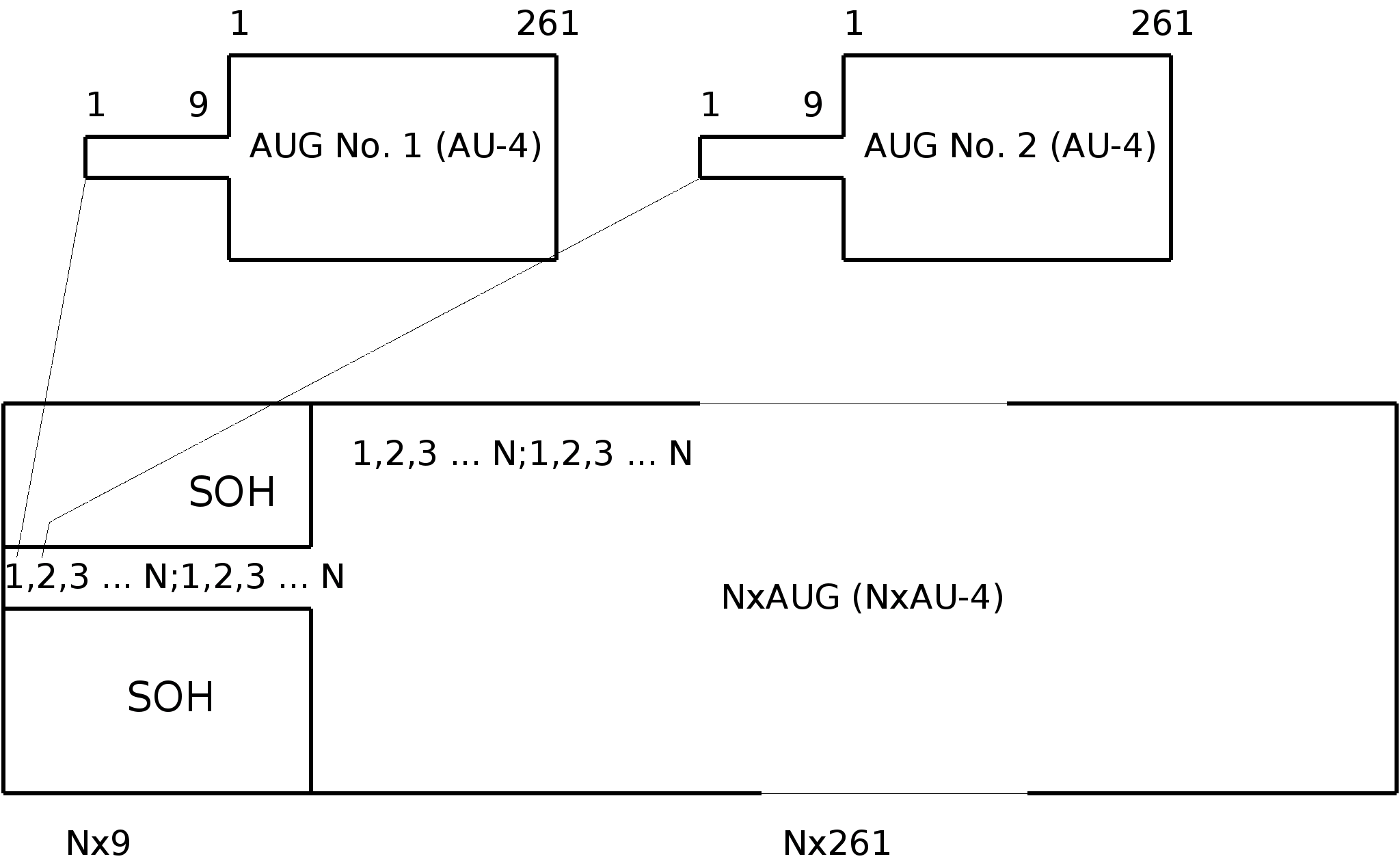 В случае, соответствующем линейному оборудованию SL1, электрический сигнал F2 (STM-1 или сигнал плезиохронной иерархии 140 Мбит/с) преобразуется в оптический сигнал F1 уровня STM-1. Линейное оборудование SL4 объединяет сигналы F2 в сигнал F1 уровня STM-4. В то же время в оборудовании SL16 сигналы объединяются в сигнал F1 уровня STM-16.