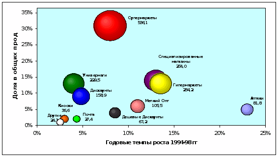 Важными результатами процесса первичного становления рыночных отношений в России стало формирование товарных рынков и обострение внутри- и межотраслевой конкуренции, как фирм-производителей, так и торговых компаний.