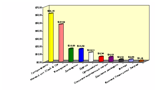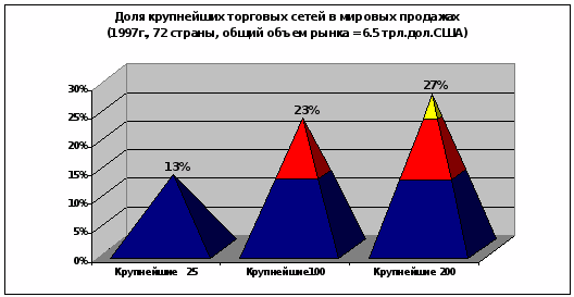 Высокая концентрация товарооборота в руках ограниченного числа крупнейших розничных сетей магазинов повысит зависимость фирм-производителей от таких операторов. Число стандартных услуг, требуемых крупнгейшими коиентами, увеличится. Наиболее остро встанет вопрос кредитных условий поставок и возможности контроля со стороны фирмы-производителя над конечными ценами “на полках” магазинов.