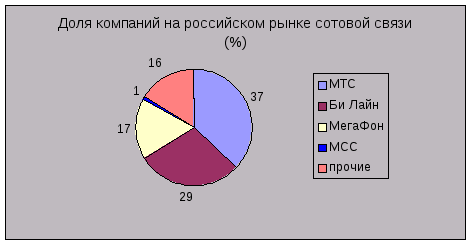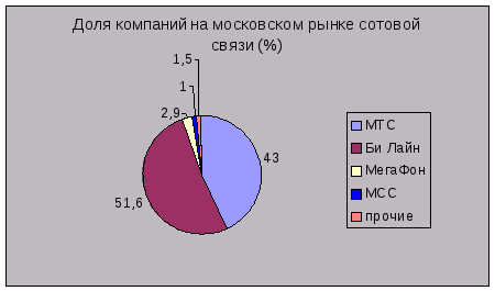 В настоящее время рынок сотовой связи постоянно расширяется. Все большее и большее количество человек начинает пользоваться услугами мобильной связи. МТС занимает устойчивую позицию на рынке сотовой связи (доля на российском рынке равна 37%, доля на московском рынке равна 43%). Главной целью МТС является удержание и дальнейшее улучшение позиции на рынке сотовой связи. Планируется продолжить политику агрессивной экспансии в регионах России (строительство сети в рамках имеющихся лицензий в регионах, приобретение региональных операторов), укрепление позиции на рынке мобильной связи в странах СНГ.