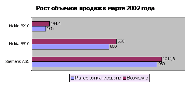 Было рассчитано, что в случае осуществления всех вышеперечисленных реформ количество продаж в 1 квартале 2002 года будет возрастать по сравнению с ранее запланированными, на основании опыта прошлых лет и последних тенденций на рынке средств сотовой связи, по следующей схеме: