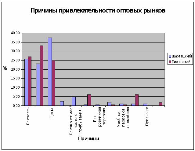 выявить разницу отношений к оптовым рынкам населения районов, насыщенных данными предприятиями, и ненасыщенных таковыми,