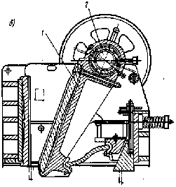 Дробилка с простым качанием щеки (рис. 2, а, б) состоит: