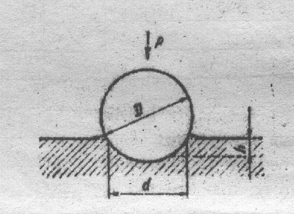 Так как глубину отпечатка измерить трудно, а проще измерить диаметр отпечатка d, выражают h через диаметр шарика D и отпечатка d: