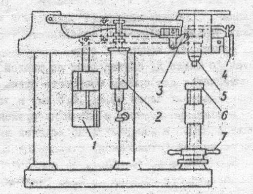Рис. 2 Схема прибора для измерения твердости по методу Бринелля