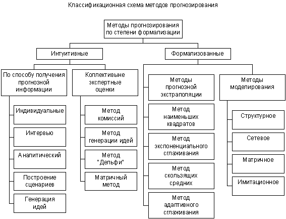 По оценкам отечественных и зарубежных ученных, в настоящее время насчитывается свыше 20 методов прогнозирования, однако число базовых значительно меньше (15-20). Многие из этих методов относятся скорее к отдельным приемам и процедурам, учитывающим нюансы объекта прогнозирования. Другие представляют собой набор отдельных приемов, отличающихся от базовых или друг от друга количеством частных приемов и последовательностью их применения.