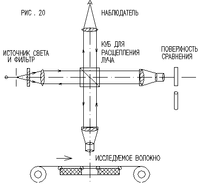 Наиболее точным и чувствительным методом исследования поверхности волокна и определения его диаметра являются метода, использующие интерферометры. Одним из приборов, пригодных для исследования оптоволокна является микроинтерферометр Линника (рис.20).