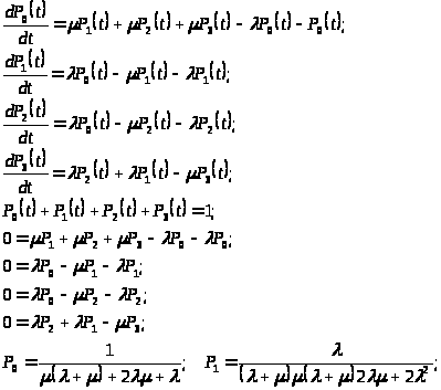 На основании графических переходов можно составить дифференциальные уравнения для нахождения вероятности пребывания Марковского процесса в состоянии P>i>.